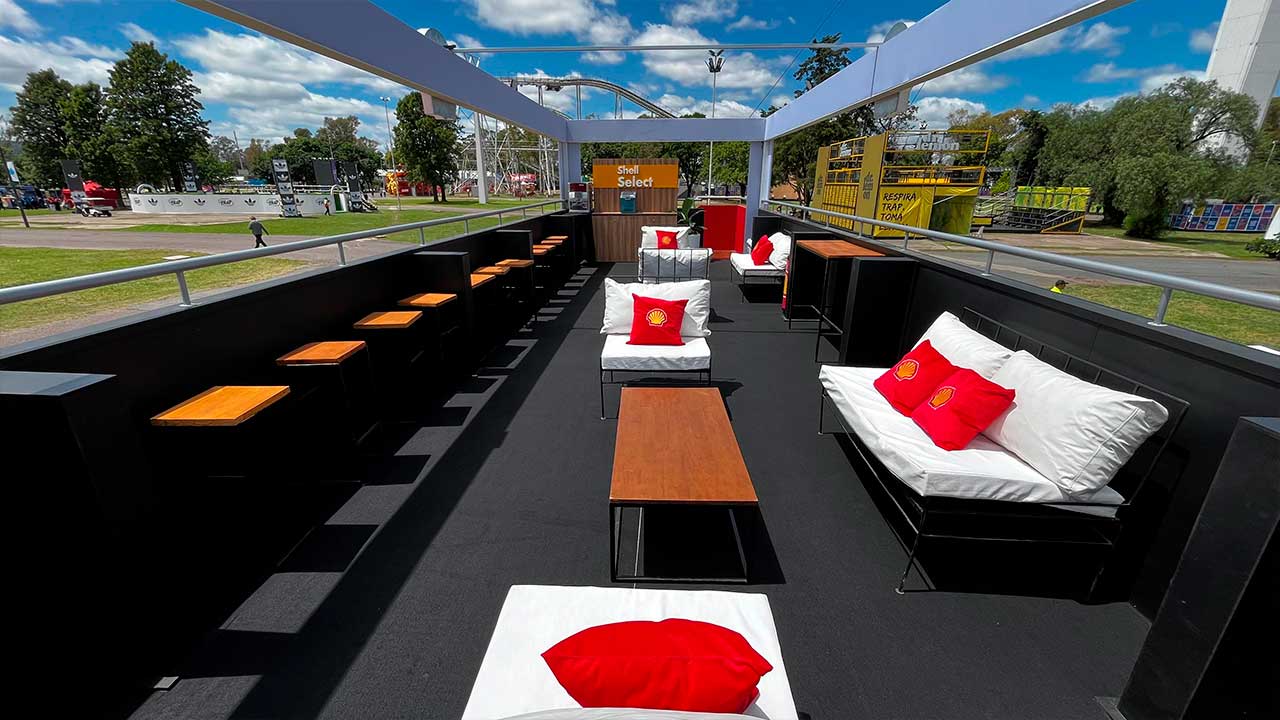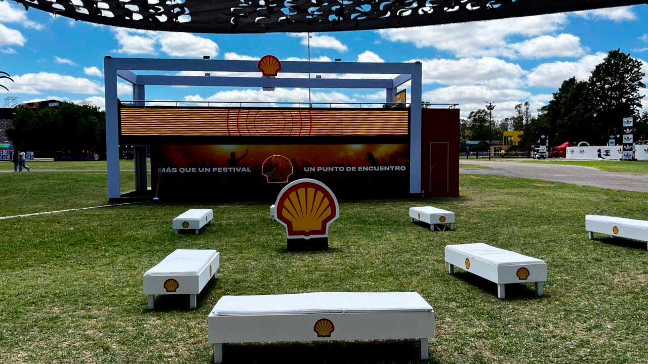 The Shell Music space stood out as a hub of energy and entertainment. With more than 200 m² distributed over two levels, it included a terrace with privileged views of the main stage, a Glitter Bar for personalized makeovers, a Gravity Room for photographs and a shaded seating area. In addition, the interactive area offered games such as Piano Hero and charging stations for mobile devices.